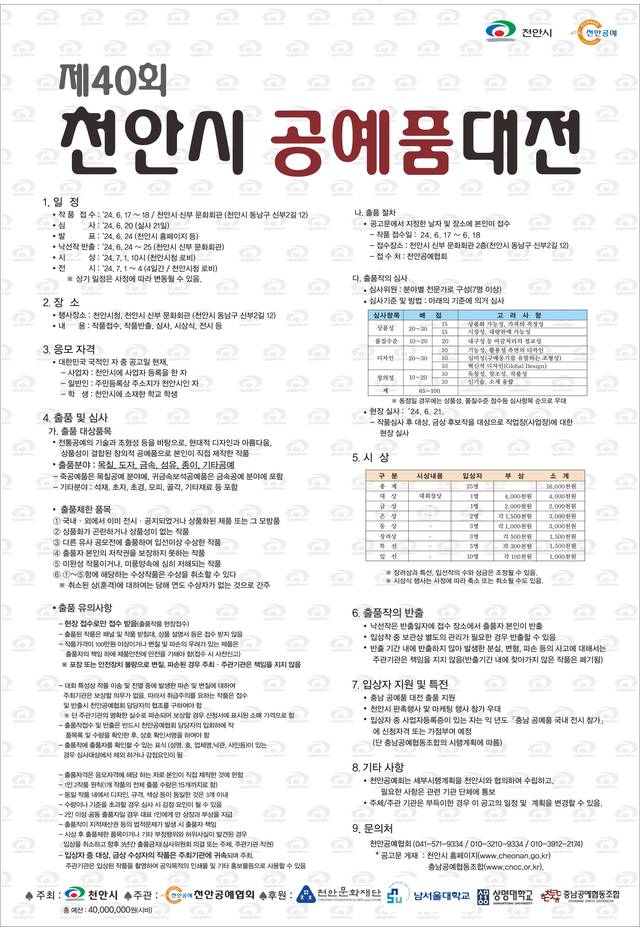 | 제40회 천안시 공예품대전 결과 발표 (0) | 2024.06.24 |