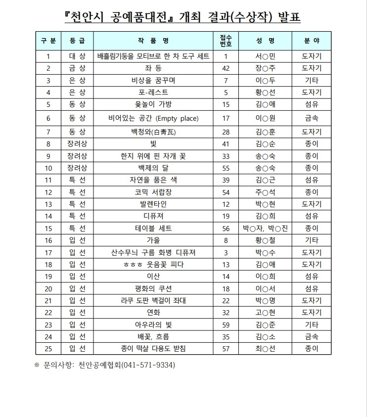 | 2024년 제30회 공주시공예품경진대회 결과안내 (0) | 2024.07.10 |