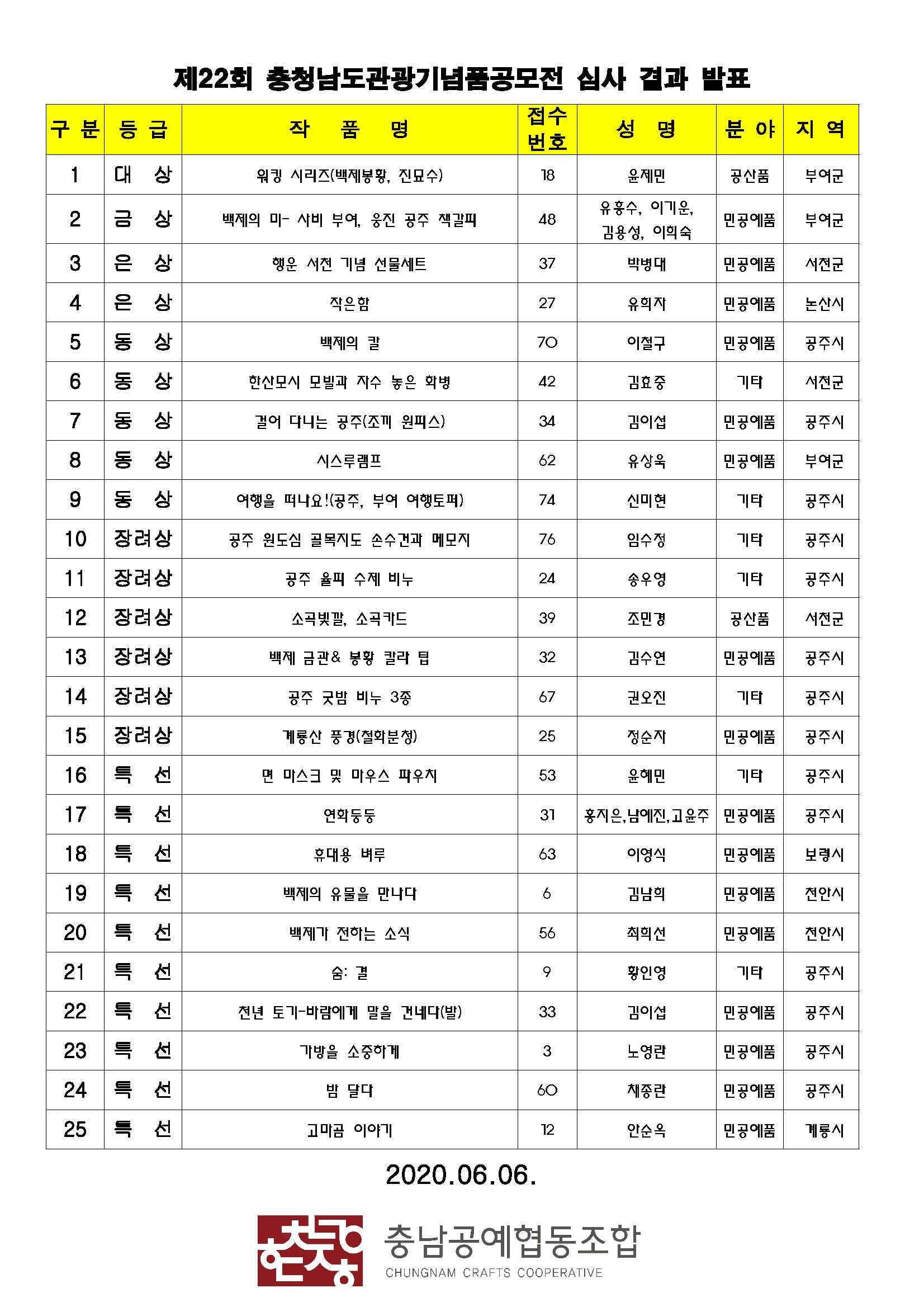 | 제 50회 충청남도 공예품대전 심사 결과 (0) | 2020.06.06 |