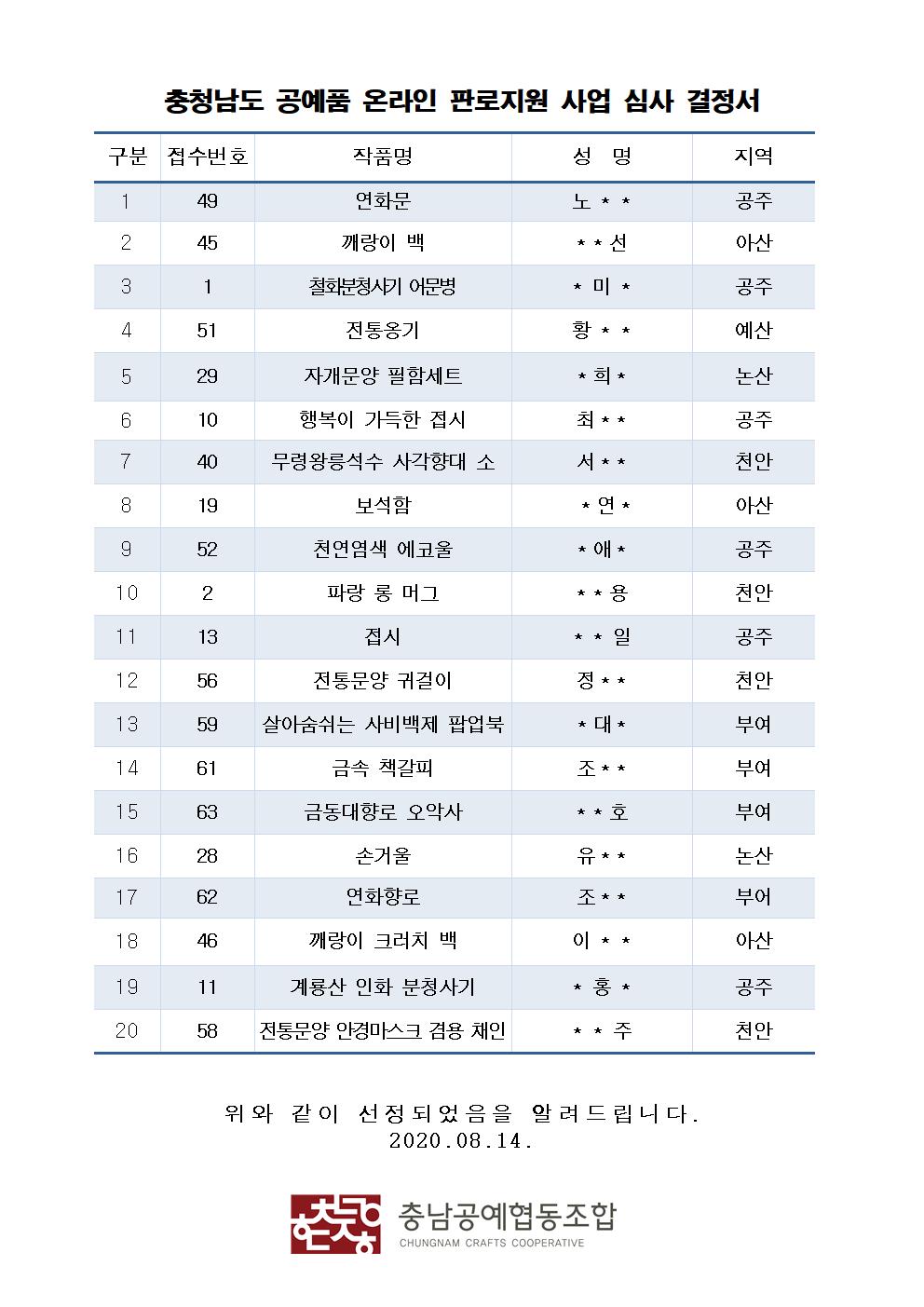 | 2020 충남 공예품 국내외 온라인 판로지원 입점 상품 모집공고 (0) | 2020.07.24 |