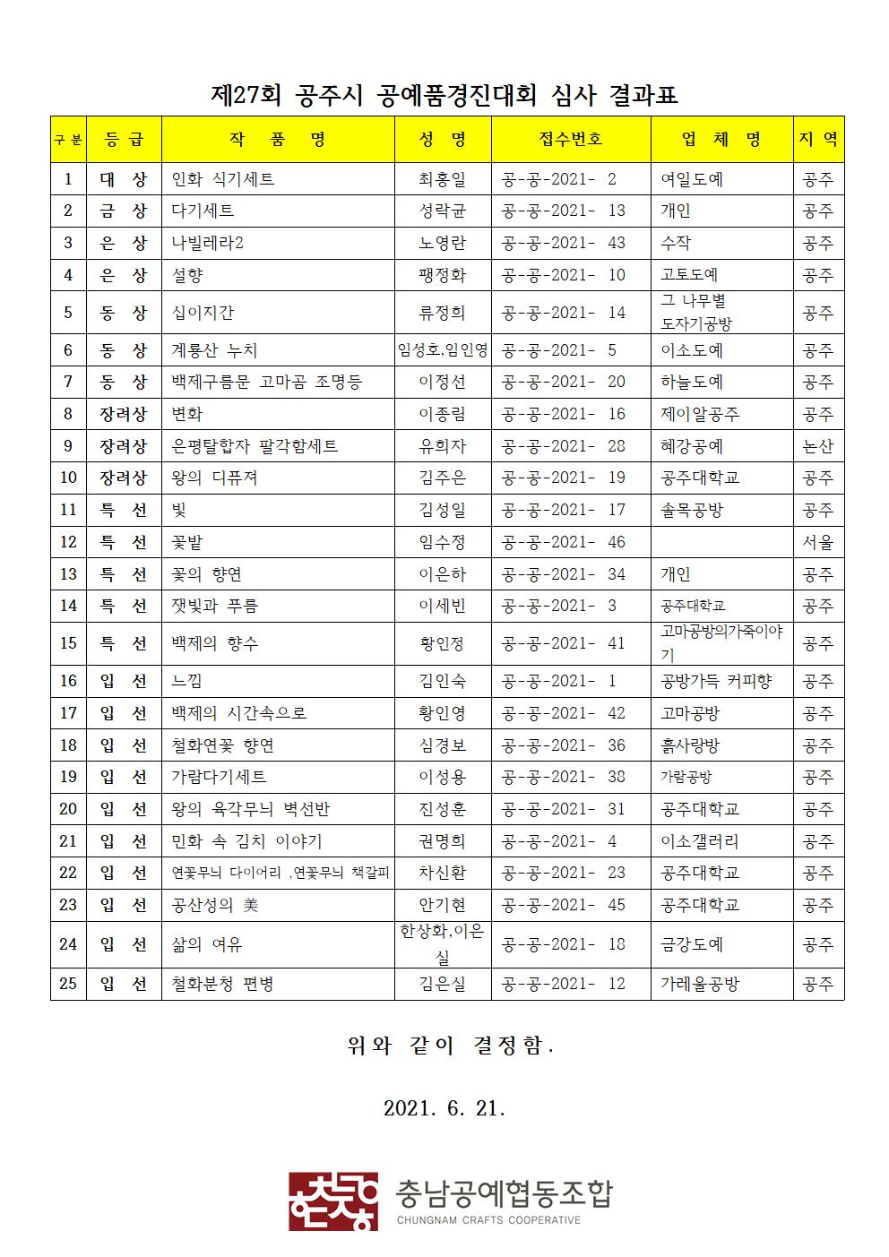 | 제51회 충청남도공예품대전 심사 결과 (0) | 2021.06.29 |