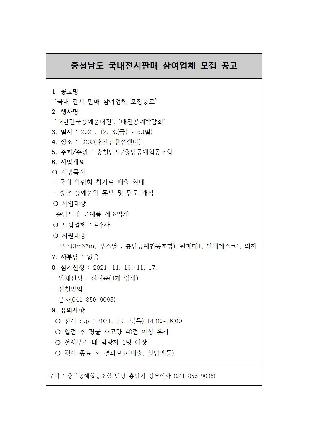 [충청남도 국내전시판매 참여업체 모집안내
