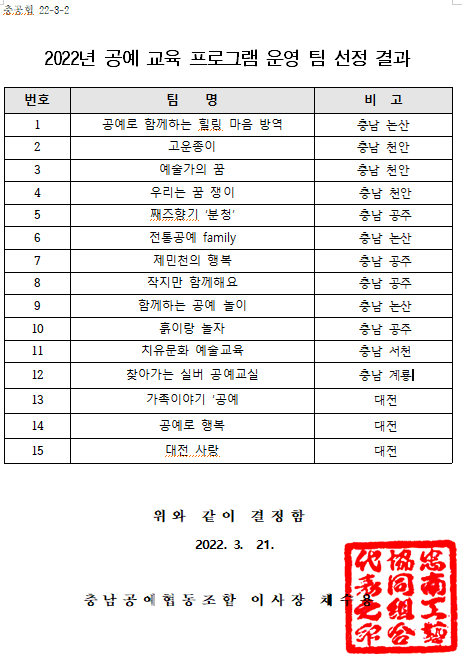 2022년 공예 교육 프로그램 운영 팀 선정 결과 발표