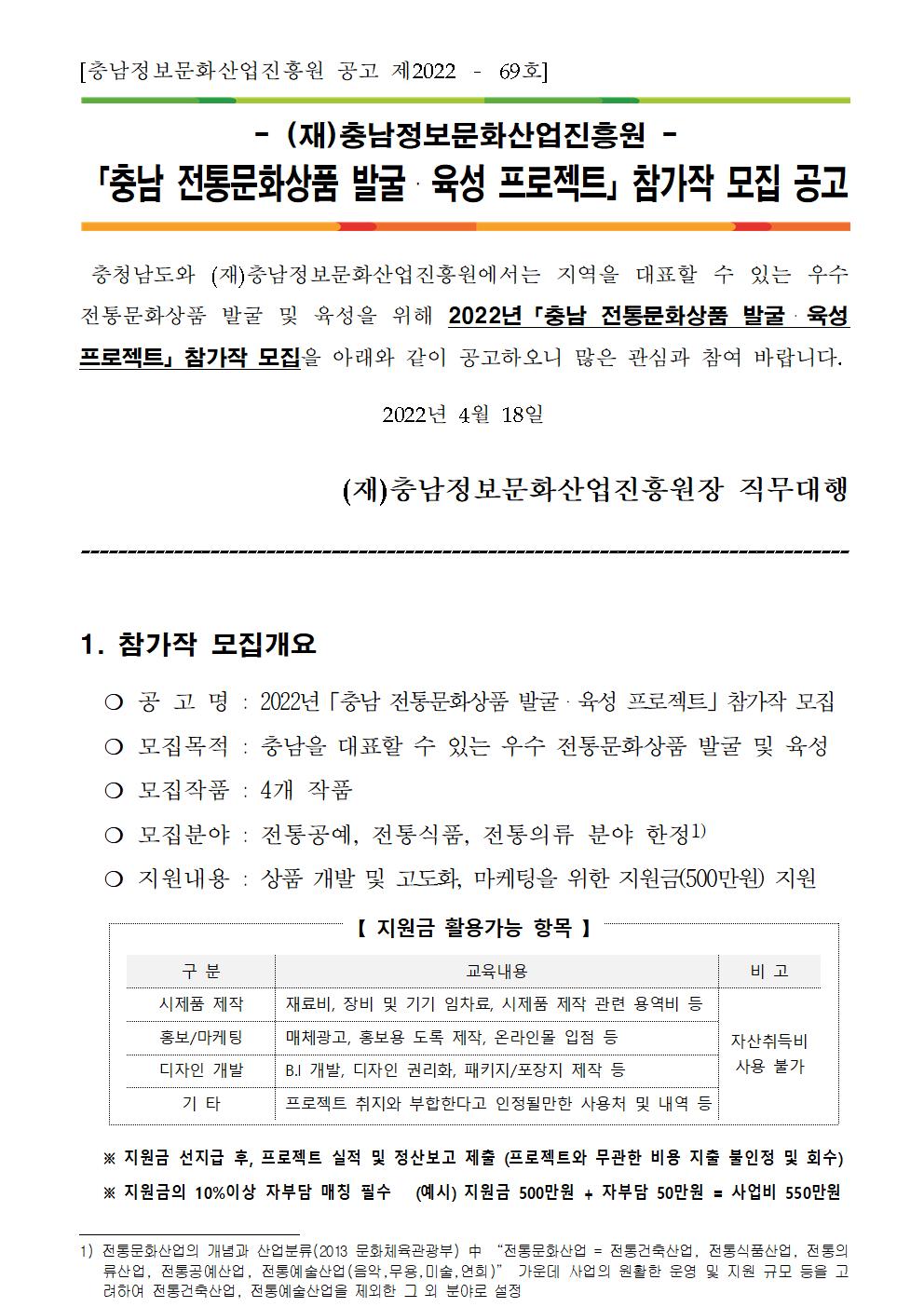 [붙임1] 「충남 전통문화상품 발굴_육성 프로젝트」 참가작 모집 공고.hwp