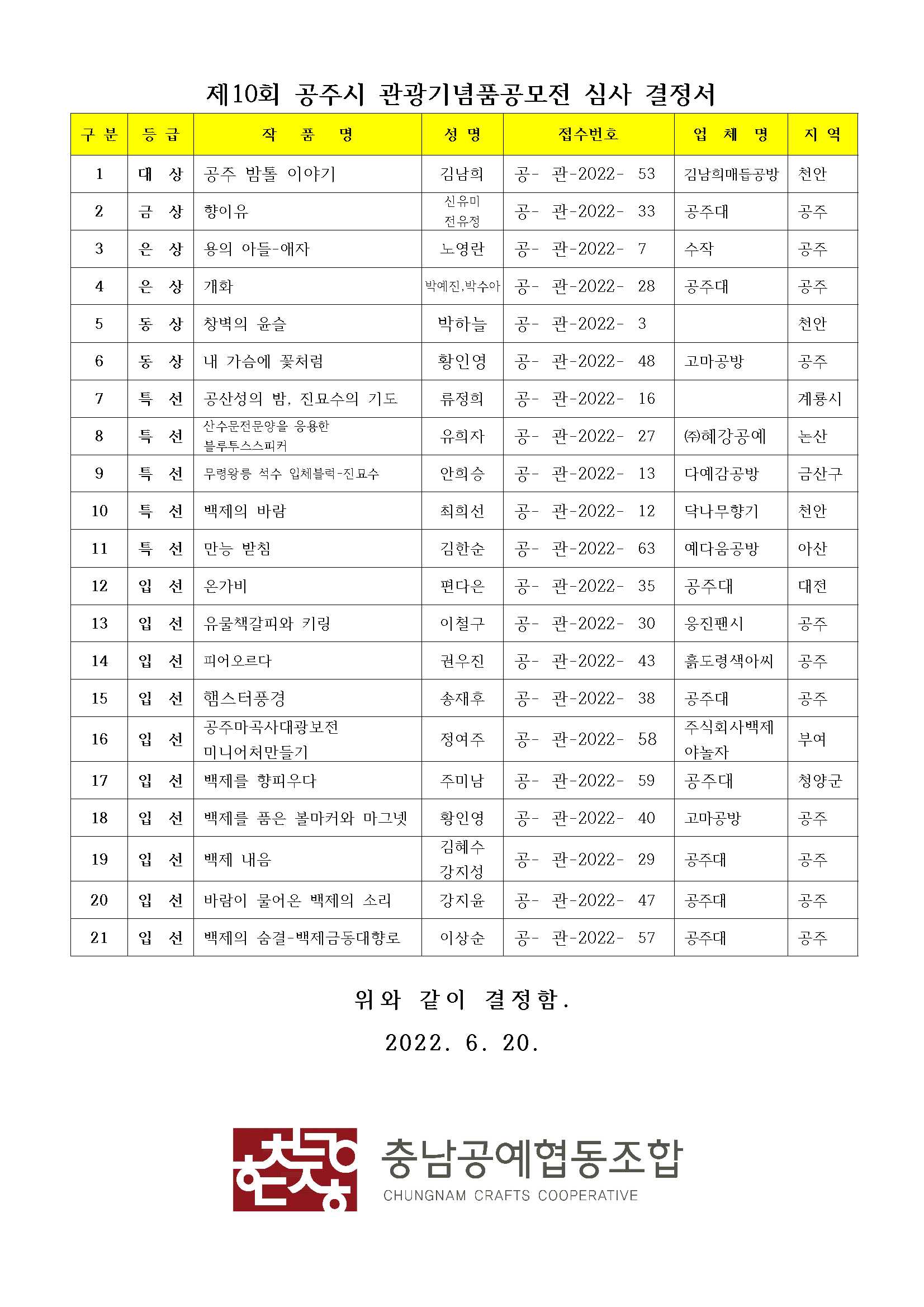 | 제52회 충청남도공예품대전 결과발표 (0) | 2022.06.20 |